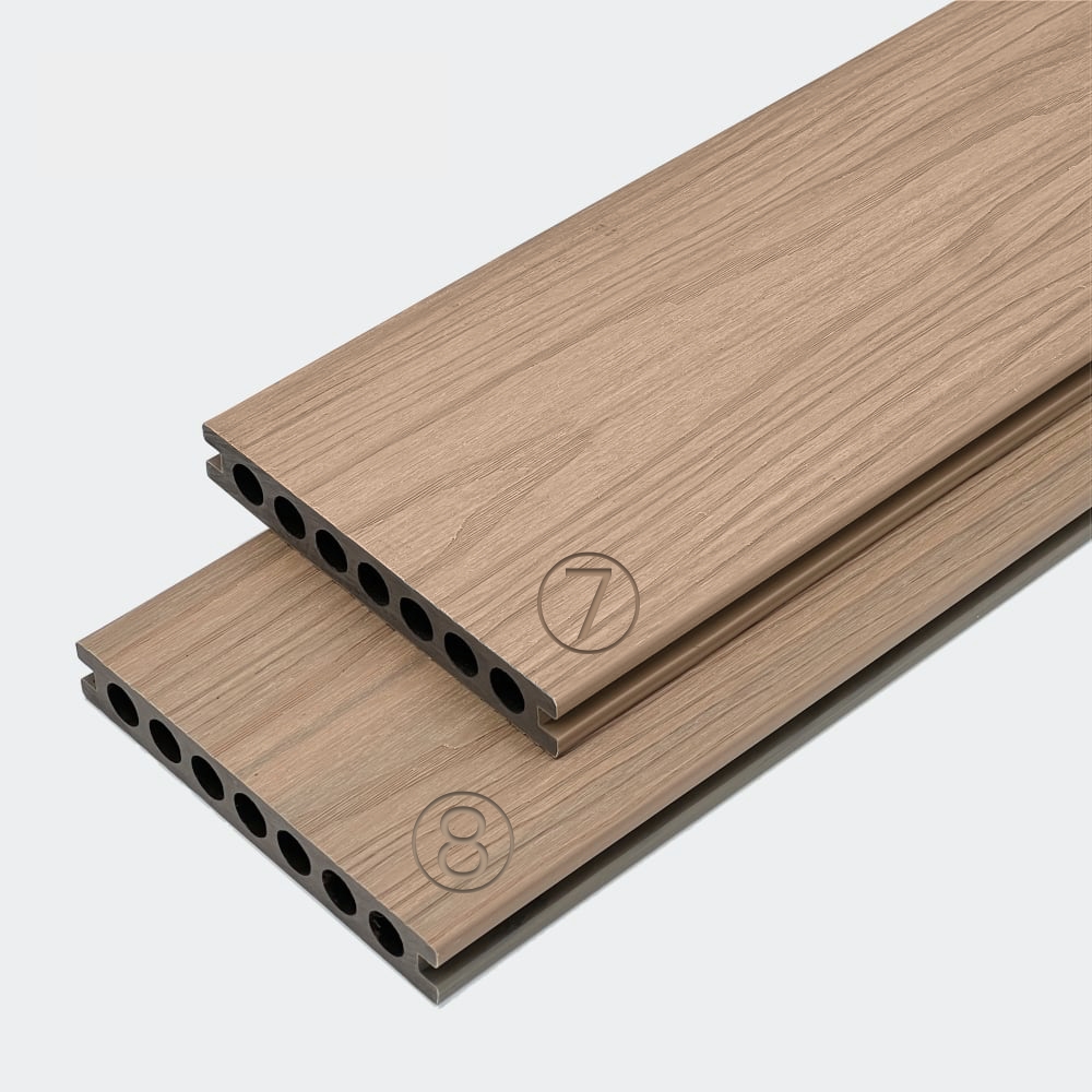 Ta tretja generacija WPC (lesno-plastične kompozitne) deske je še posebej primerna za uporabo v poslovnih prostorih zaradi svoje odlične odpornosti proti obrabi in elegantnega videza.