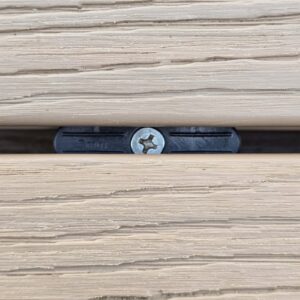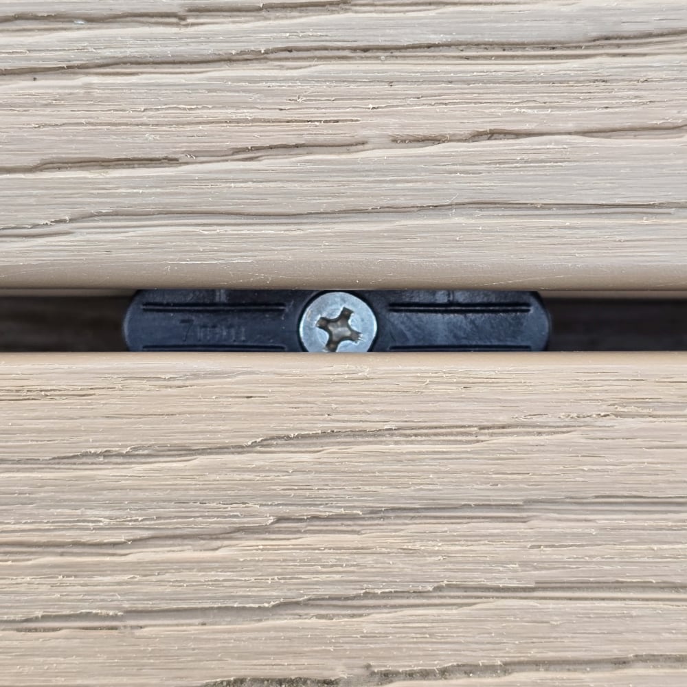 Plastična sponka z nerjavnim vijakom za montažo WPC desk Cena z ddv: 0,25 €/komplet ali 5,25 €/m² ✅ na zalogi Tehnični podatki:Velikost sponka: 38 x 15 x 10 (v) mm Velikost vijaka: ⌀ 3,8mm, dolžina: 32 mm.Po montaži med dvema deskama ustvari 5,5 mm široko režo.Material: Plastika in inox Opis Ta plastična sponka je primerna za vse WPC terasne deske v naši trgovini.Cena vključuje 1 gratis inox samorezni vijak.Poraba 21 kos / m². Povezani dodatki WPC deske za teraso s zascitno plastjo polimera, tretje generacijeWPC terasne deske 3D imitacija lesa, druge generacijeWPC deske rebraste, prve generacije, STANDARDTrdna WPC Podkonstrukcija, 4 x 2,5 x 300 cmWPC zaključni L- profil, s polimerno površinsko plastjo, 300 cm dolgaZaključni L profil za WPC deske, STANDARD, 300 cm dolga Povezani članki Koliko veste o WPC terasnih deskah?